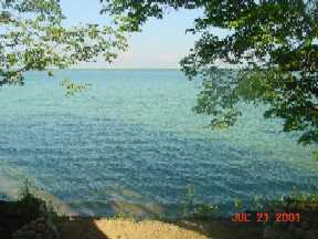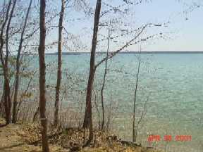 Mullett Lake from inside, looking out the front window. This is from essentially the same place as the before view, revisited after the move process.